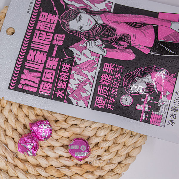 Как твердая карамель на основе сахара и крахмальной патоки, обладает твердой текстурой и плотной структурой, после попадания в рот требует медленного рассасывания или жевания, сладость и фруктовый аромат постепенно высвобождаются со временем, обеспечивая длительное вкусовое восприятие.