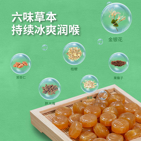 Обогащена экстрактами шести травяных растений, включая семена стеркулии, цветки лоницеры и корни платикодона. В качестве основного сырья используется изомальт. Продукт производится по высоким стандартам полностью автоматизированного пищевого производства с системным строгим контролем качества на всех этапах. Продукт прошел авторитетную профессиональную проверку.